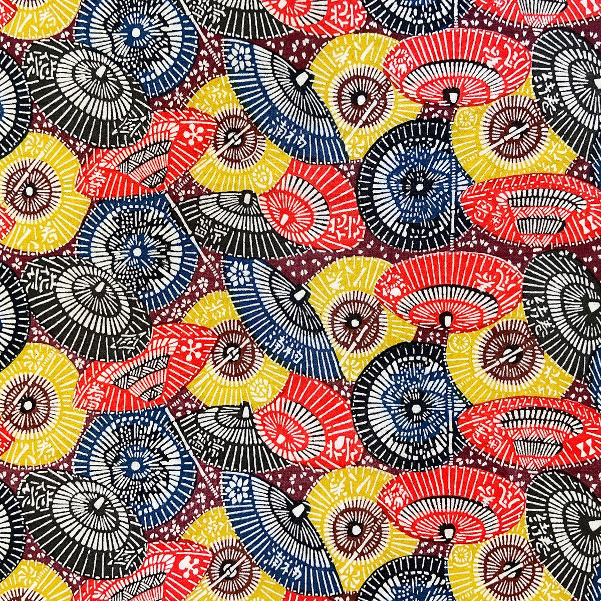 This umbrella pattern, which shows colorful and rhythmic movement in the midst of a blizzard of cherry blossoms, is a very auspicious pattern that looks like a scene from Kabuki.