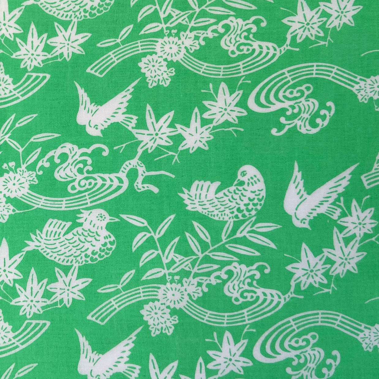 水の流れに、小菊や楓が浮かんだ様子を描いた、平安の時代からの定番の組み合わせの文様です。絶えずとまることなく流れる水は、清らかさを表し、厄災を流す “魔除け” や、火から身を守る “火除け” の願いが込められています。 菊は “延命長寿” 楓は “長寿” おしどりは “夫婦円満” 吉祥柄の詰め合わせのような大変縁起の良い一柄です。