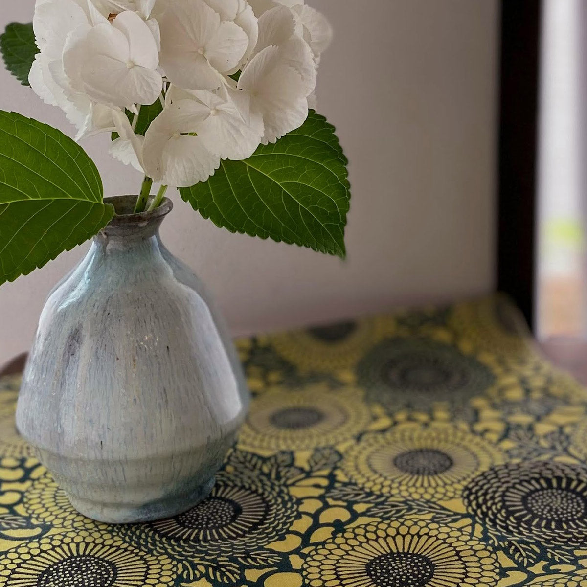 色同士がにじんで、同じ柄でもそれぞれが微妙に違う見え方の一点もの。一期一会の模様を作り出します。