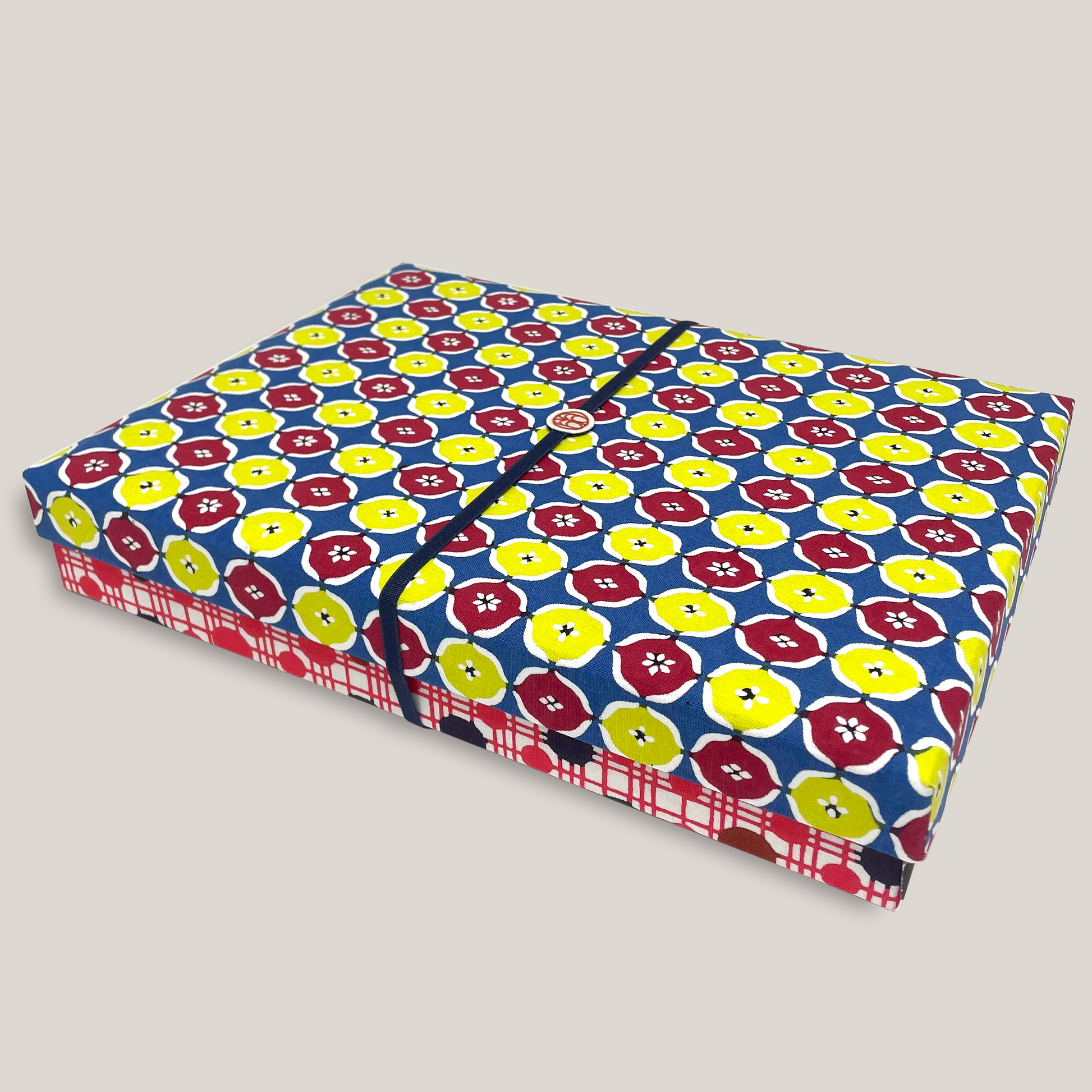 型染め ファブリックボックス L (A4サイズ) / 丸紋崩し × 水玉格子