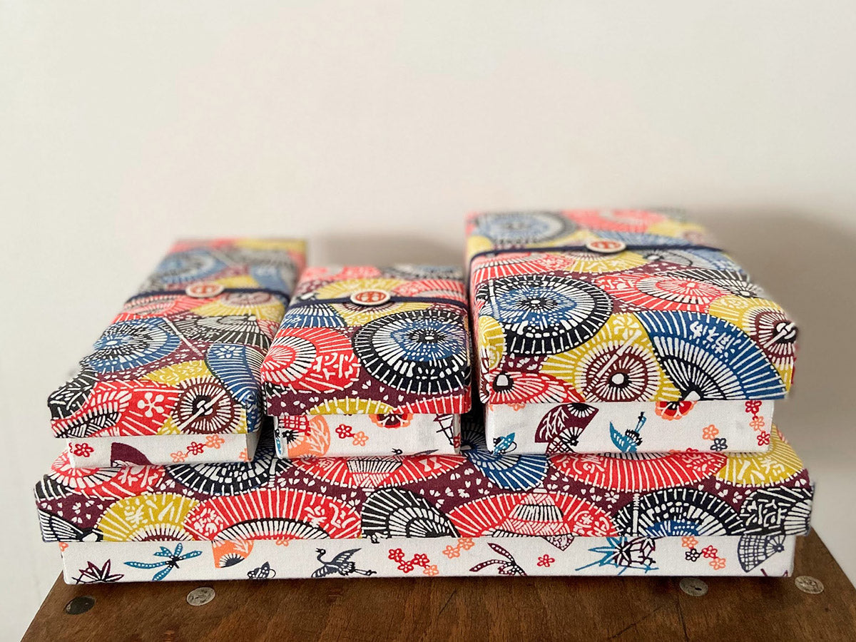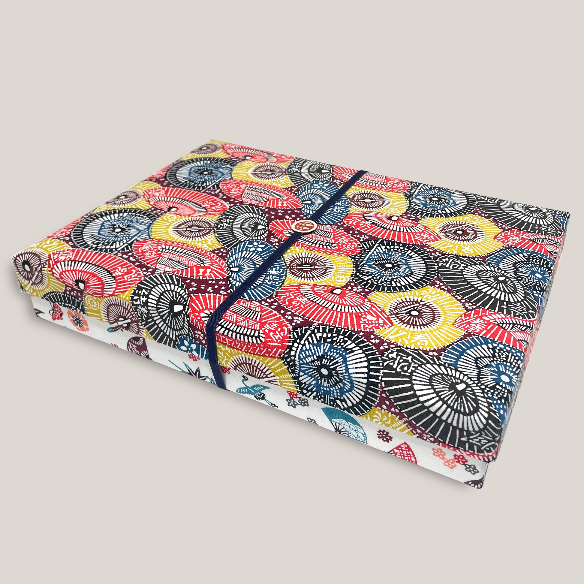 型染め ファブリックボックス L (A4サイズ) / 傘 × 蝶に扇面草花