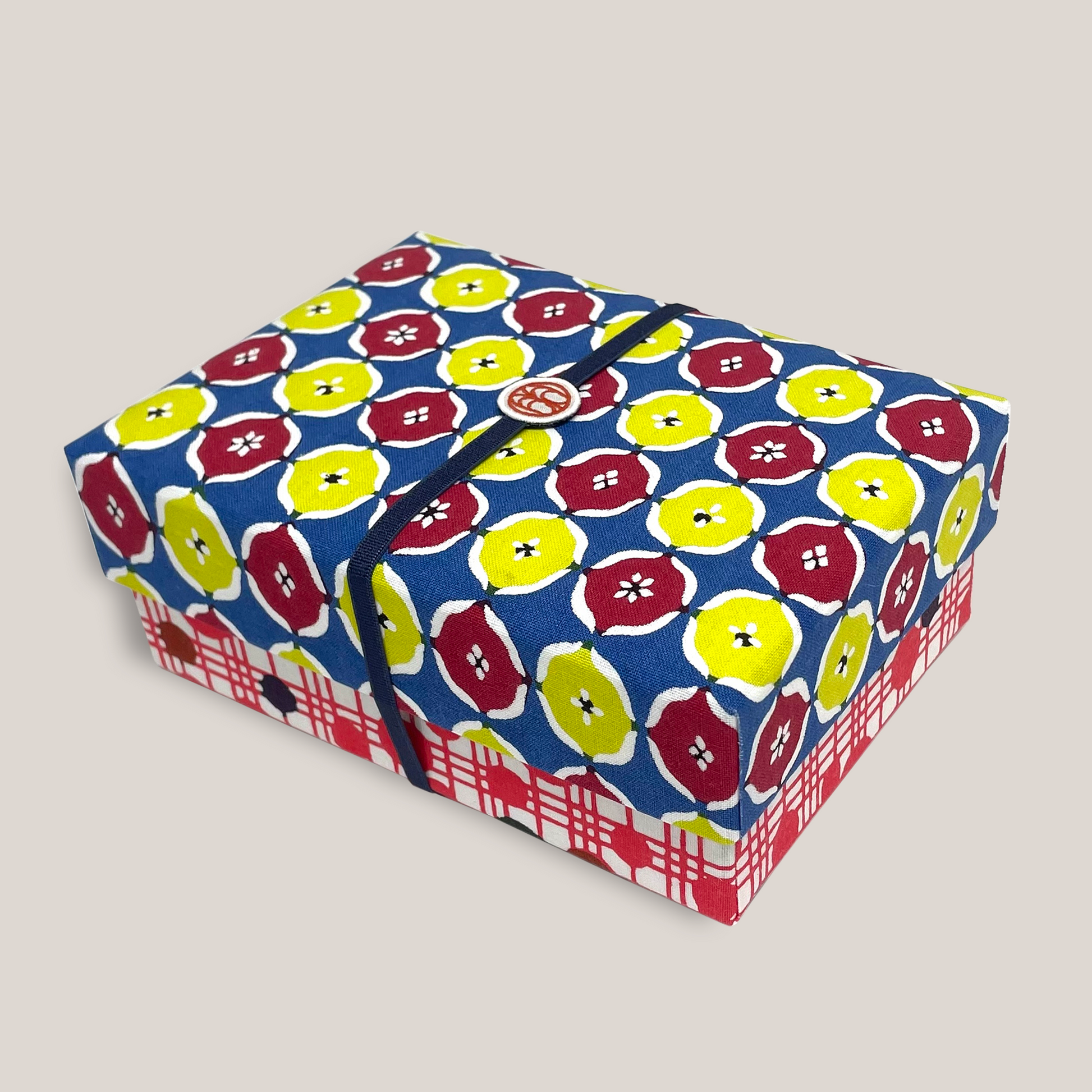 型染め ファブリックボックス M (ハガキサイズ) / 丸紋崩し × 水玉格子
