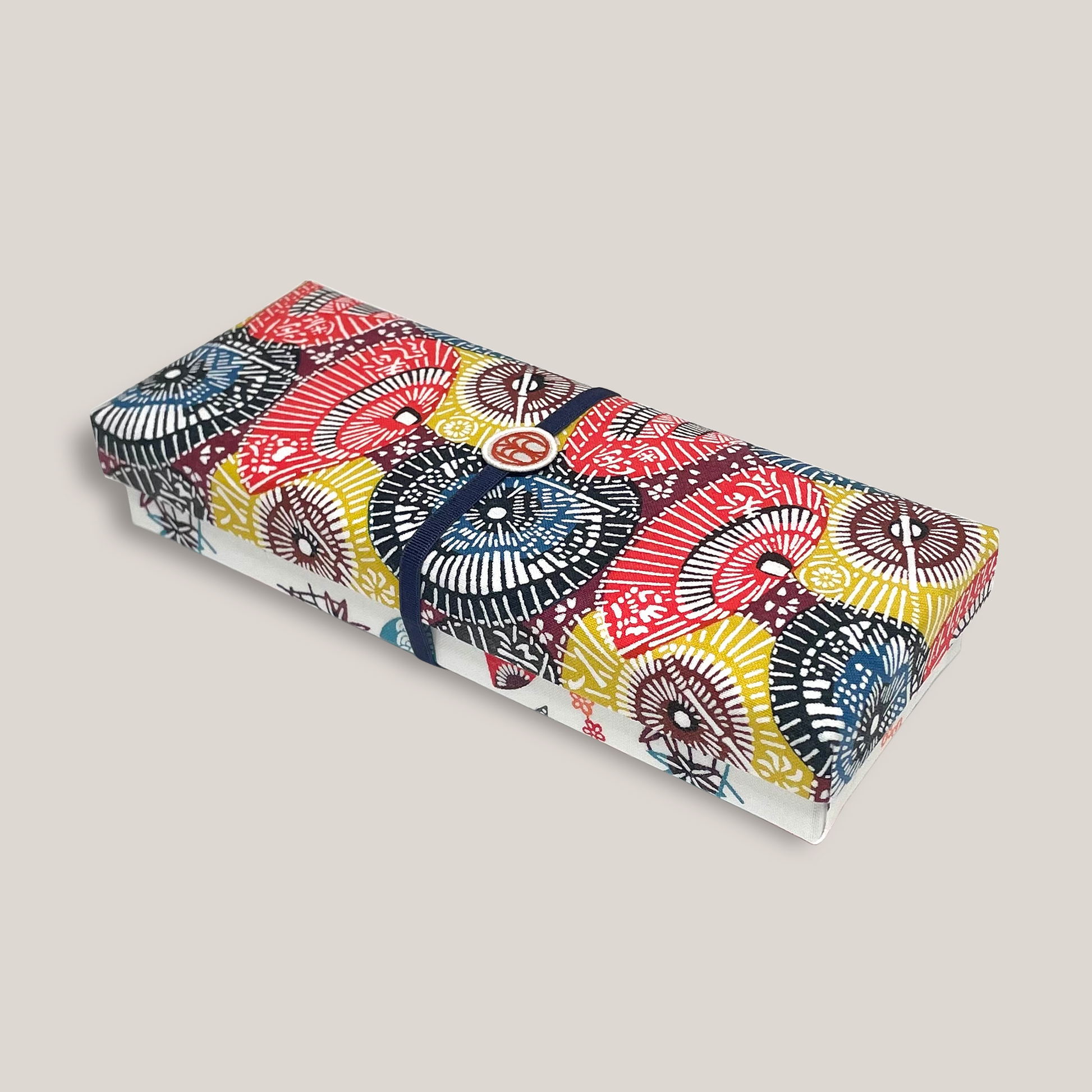 型染め ファブリックボックス ペンケース / 傘 × 蝶に扇面草花