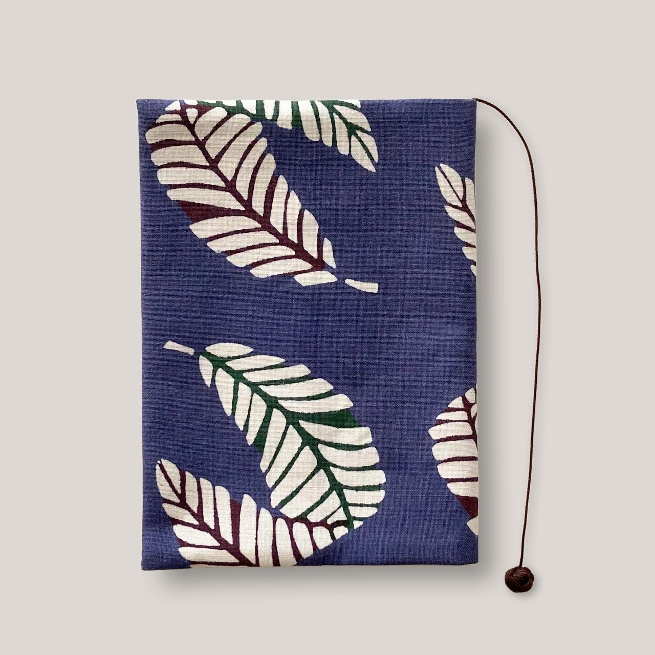 ネイビーの枇杷の葉柄のブックカバーは男性にも使ってもらえたらうれしいです。