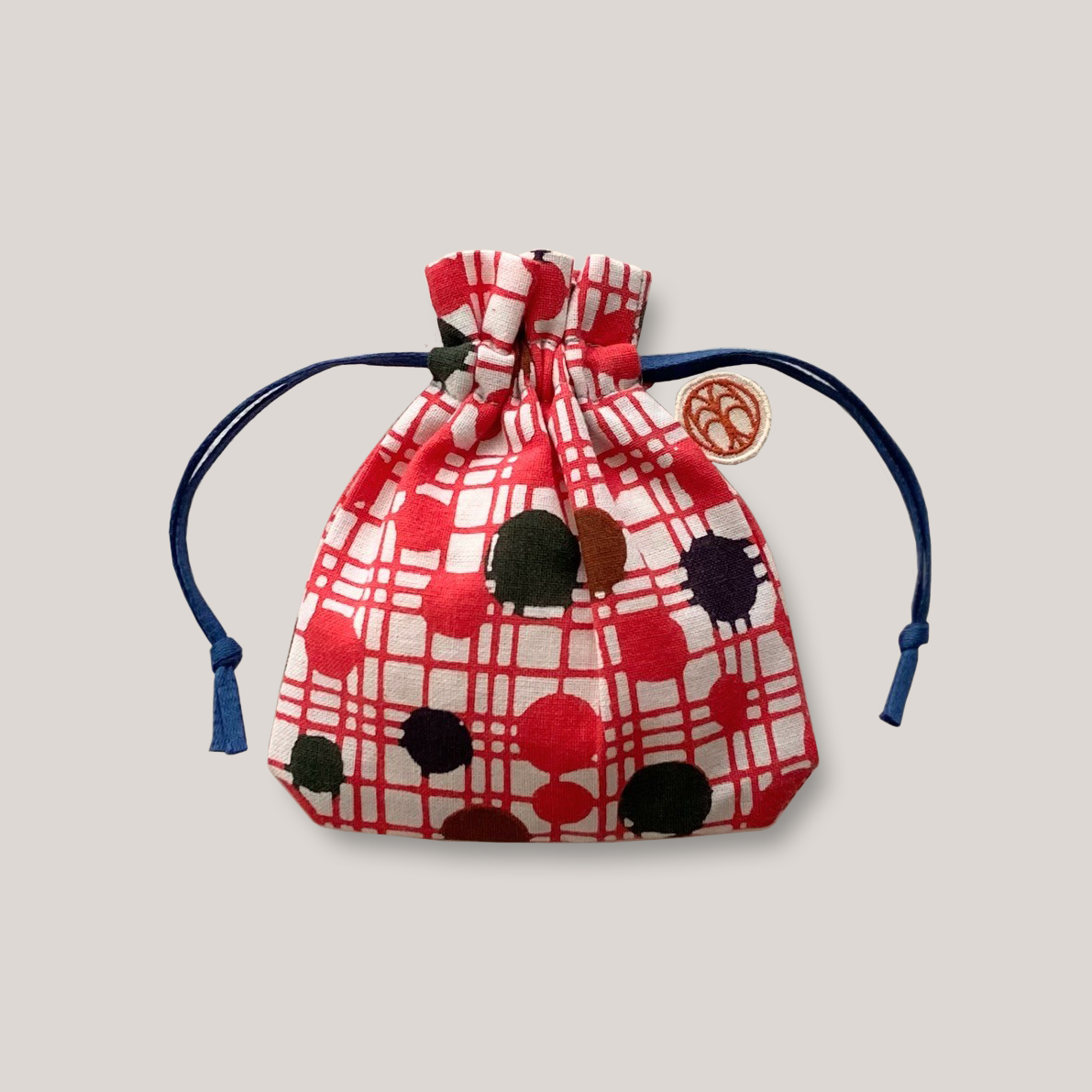 型染め きんちゃく S / 水玉格子
