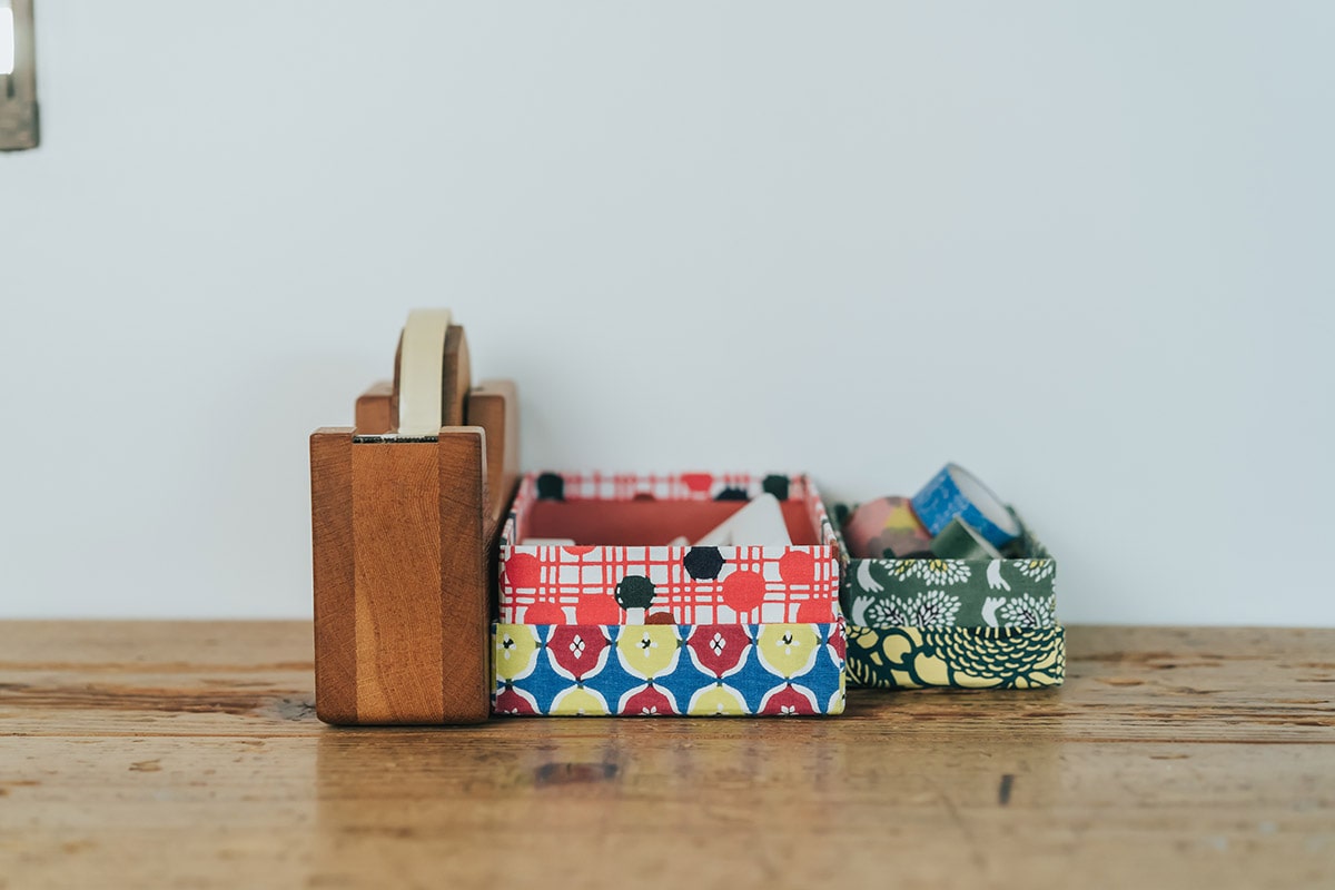 型染め ファブリックボックス ペンケース / 傘 × 蝶に扇面草花