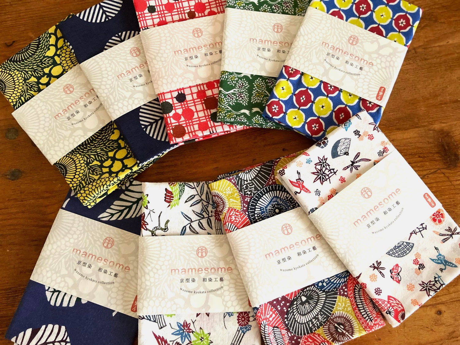 和柄をより身近に感じていただきたいという想いから、 ポップなカラーリングで8柄、16バリエーション展開! 愛され続ける伝統柄にはそれぞれに幸せを願う意味がこめられています。 身につけることで、気持ちが華やぐ縁起物。 京都や日本のお土産としてはもちろん、長寿、結婚、新しい門出などの人生の節目のお祝いにもぴったりの贈り物として喜ばれています。 日々の生活にぜひ取り入れてみていただけるとうれしいです!